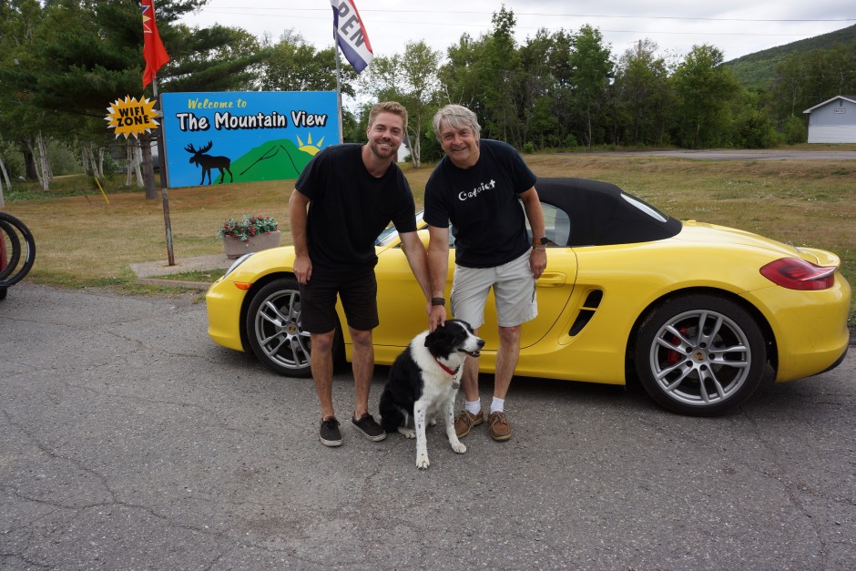 It was a longish travel day yesterday and I was just too tired to post last night. Briefly, before we set out today to Caribou to get the ferry to PEI I can tell you that the remainder of the Cabot Trail was just spectacular. Unfortunately the weather was too windy for the whale tour boats to go out yesterday so we continued our drive to Sydney - the only place I could find a room for the night. We stopped a number of times along the way - and Ben enjoyed himself on the beaches. As you can see he got a little damp around the edges! Last photo is of fellow Porsche Club members from Niagara on the Lake whom I spotted on the Cabot Trail. We get everywhere!